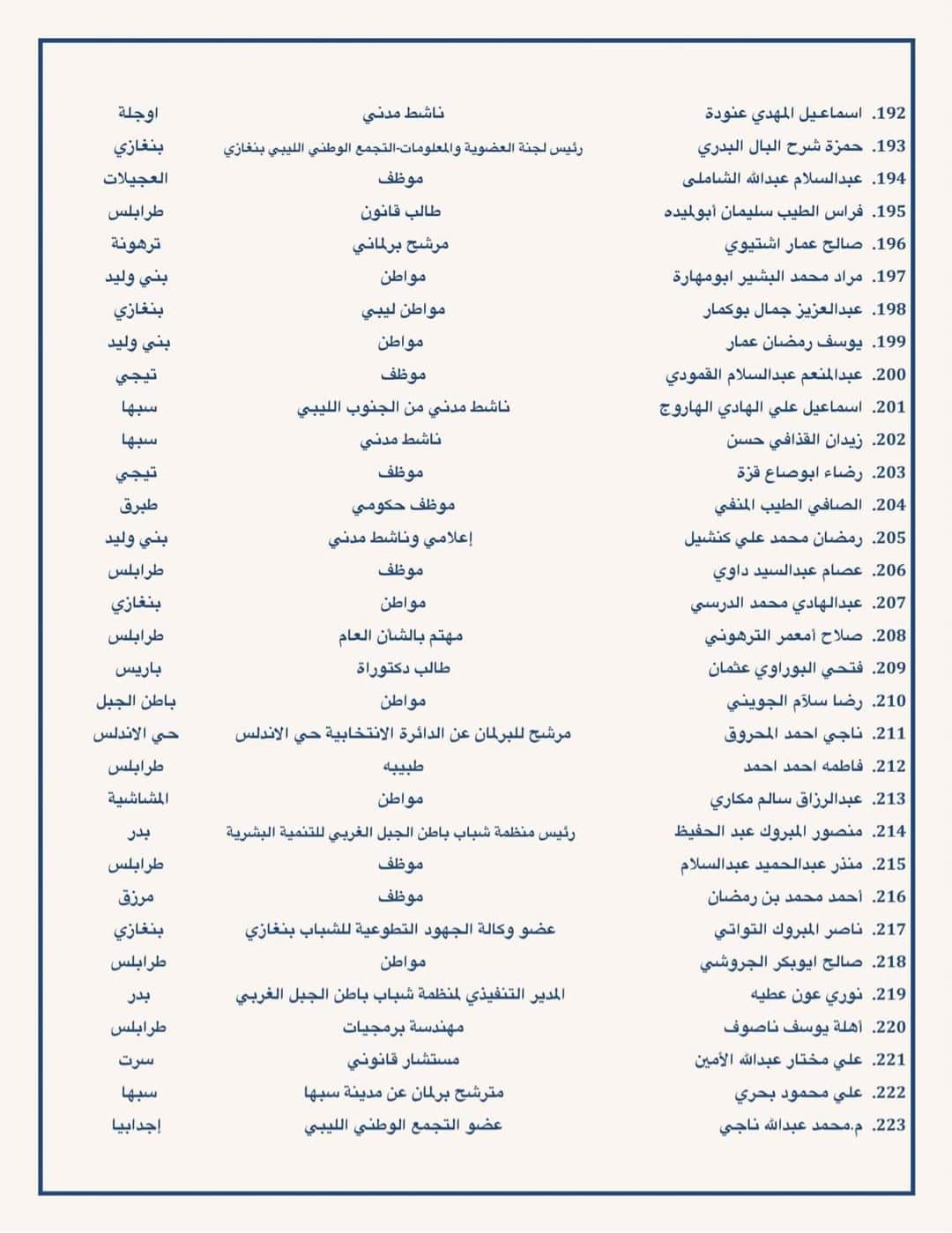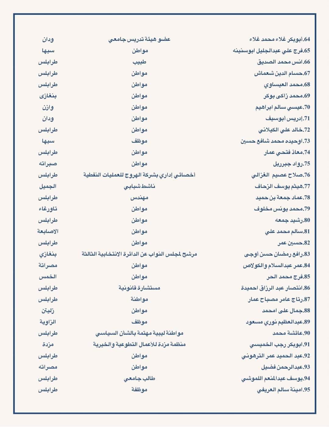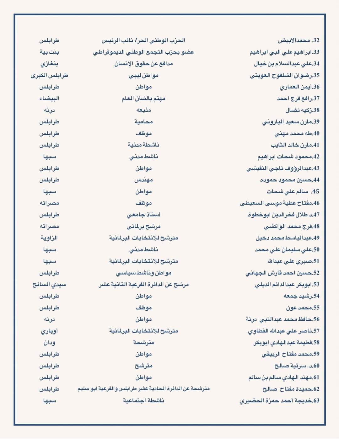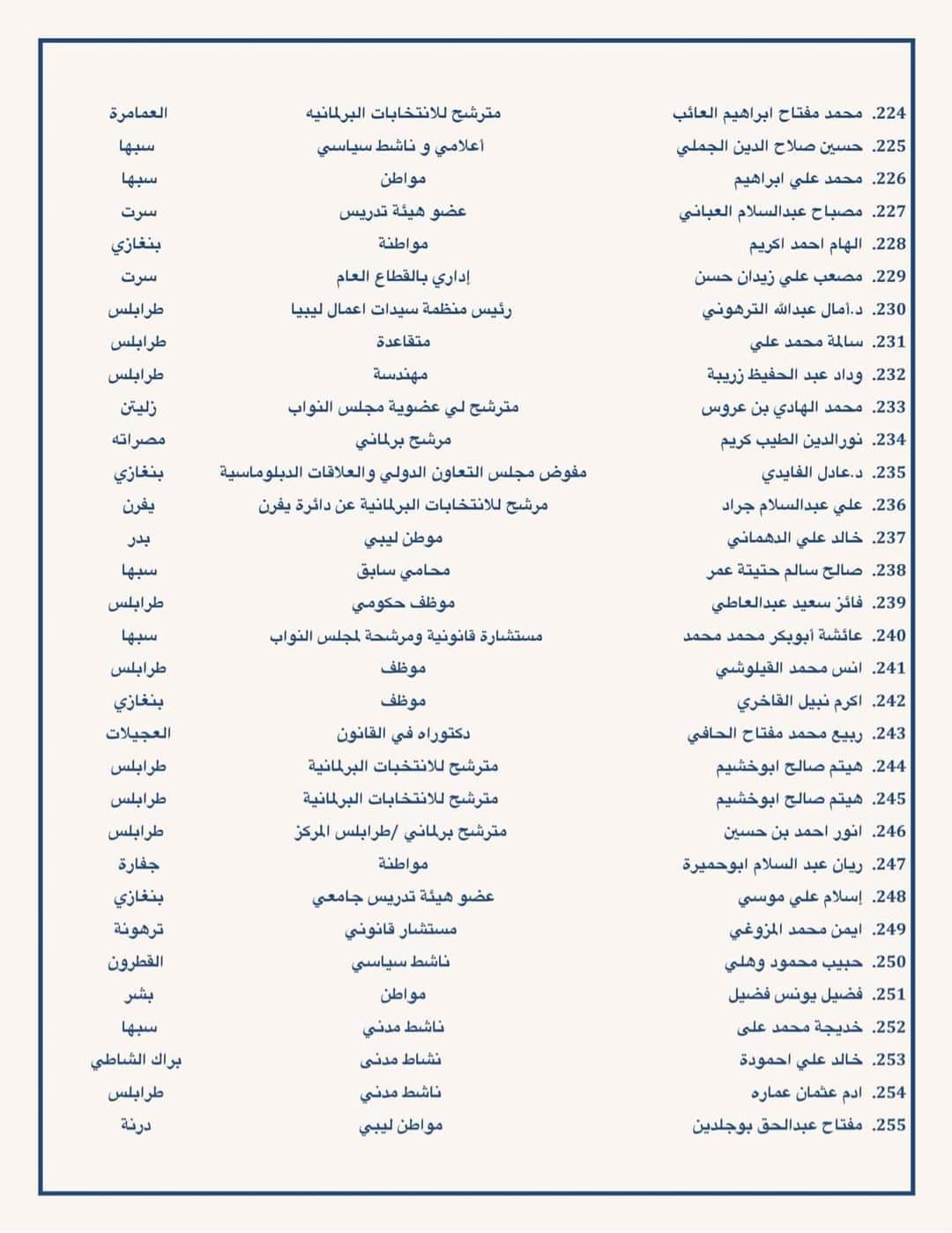 دعت مئات من الشخصيات السياسية والقانونية ومترشحي الرئاسة والبرلمان ومن مختلف شرائح الشعب الليبي إلى ضرورة معالجة اشكالية القاعدة الدستورية والتوجه في اسرع وقت لاجراء الانتخابات.