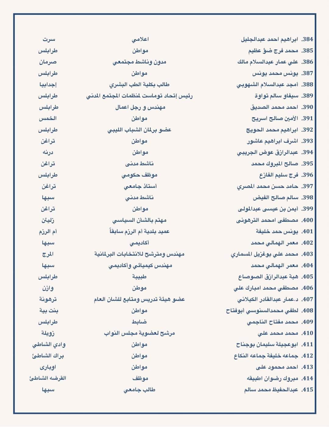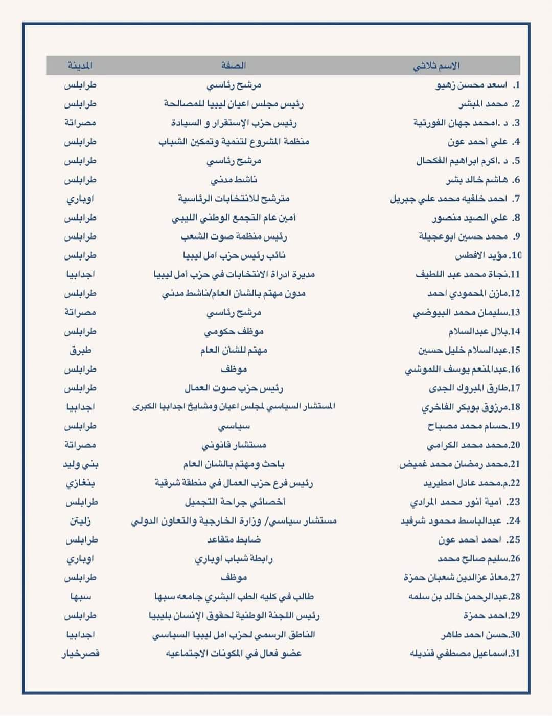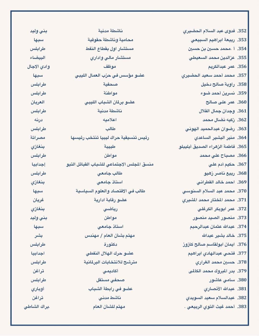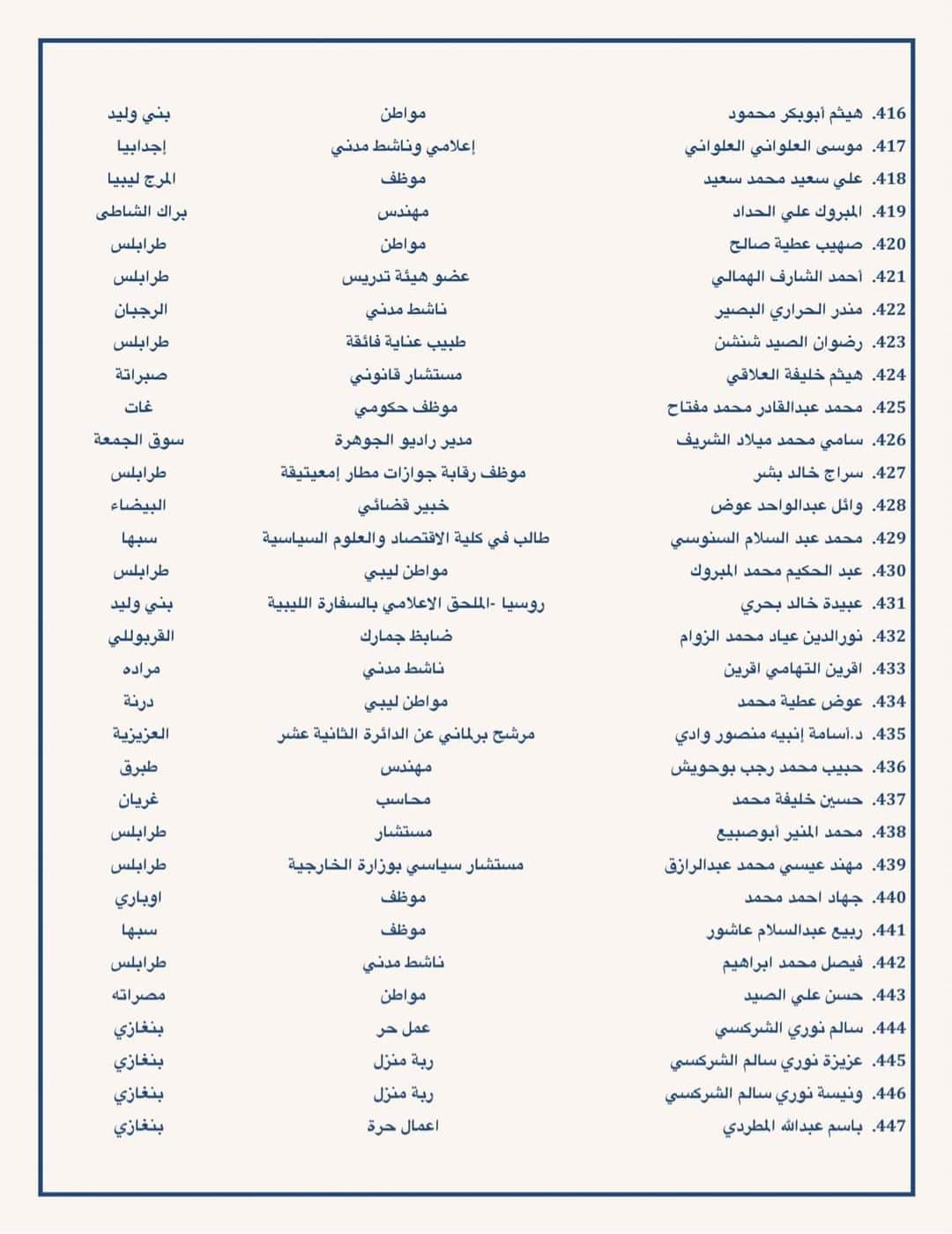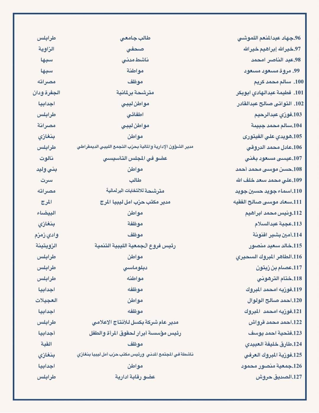 دعت مئات من الشخصيات السياسية والقانونية ومترشحي الرئاسة والبرلمان ومن مختلف شرائح الشعب الليبي إلى ضرورة معالجة اشكالية القاعدة الدستورية والتوجه في اسرع وقت لاجراء الانتخابات.