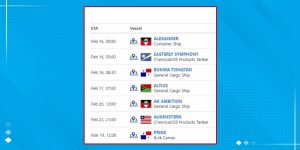 وتضم القائمة أيضًا سفن الشحن العامة مثل ALTIUS وAUGENSTERN وسفن ناقلة الإسمنت السائب مثل PRIDE، ومن المتوقع أن تصل جميع هذه السفن إلى الميناء في الفترة ما بين 16 و23 فبراير.